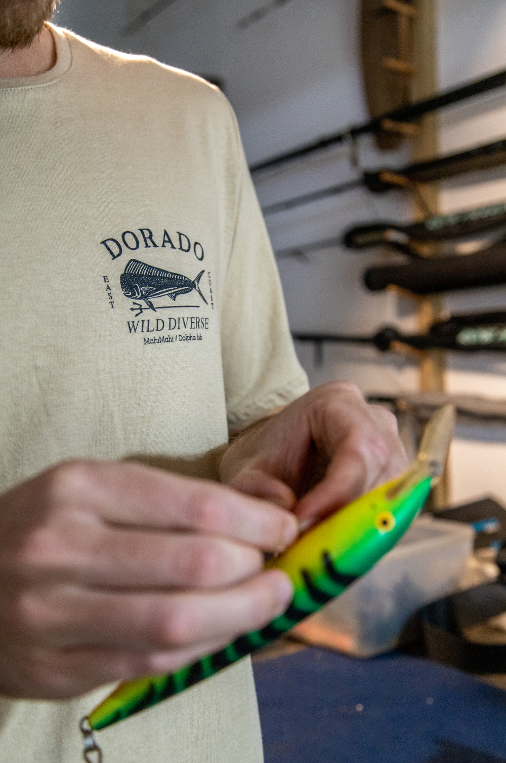 This from's part of our Fishing Series. Mens Dorado Shirt, 100% locally made, 100% Cotton.